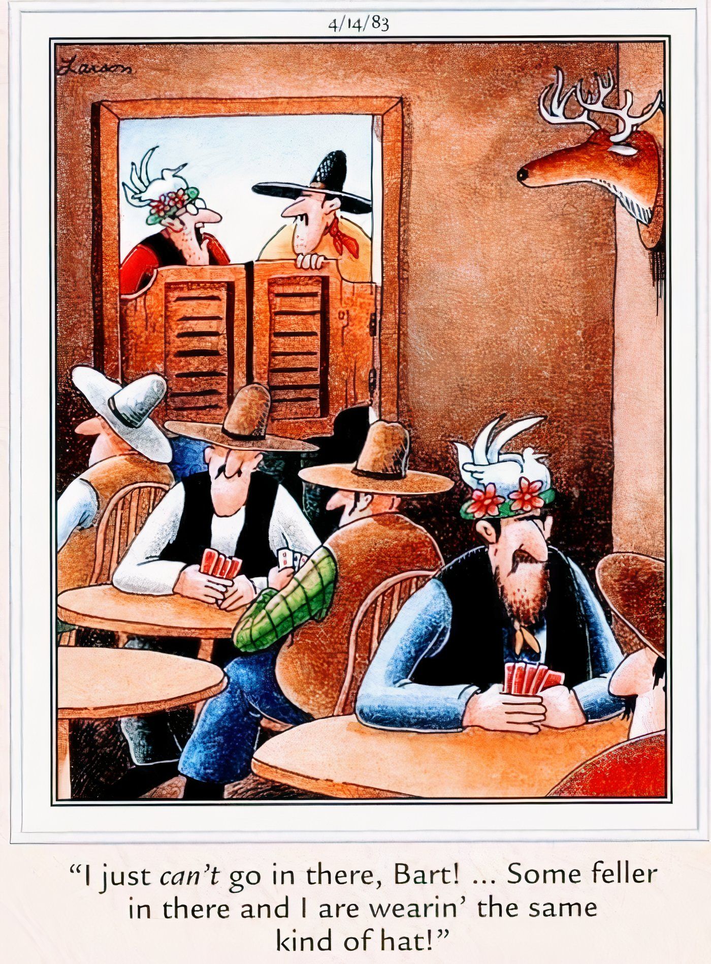 Last week, I asked you which Far Side cartoon Sting was laughing at, and many of you agreed with me — it was the cowboys. As always, good to check with you guys before making a conclusion.