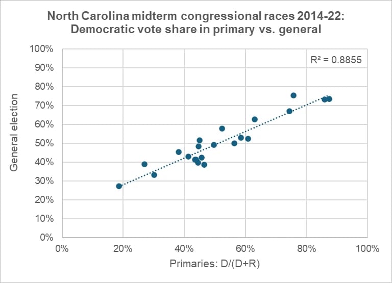 I’m usually dubious of trying to correlate primary turnout numbers with general election outcomes because they can be so noisy; variations in the competitiveness of top of ticket races tend to make it hard to extrapolate them. But North Carolina may be an exception to that rule, as CBS News analyst Kabir Khanna found. Turnout in last Tuesday’s primary points to a good Democratic year in the state, which would not only flip their U.S. Senate seat but could even put the gerrymandered state House of Representatives into play.